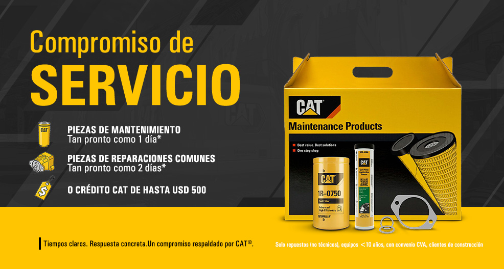 * Exclusiones: este compromiso no aplica para repuestos que ya estén cubiertos por la Garantía Estándar de Caterpillar o por un Plan de Protección de Equipo (EPP). Asimismo, el crédito no podrá ser utilizado para la compra de máquinas nuevas o motores.